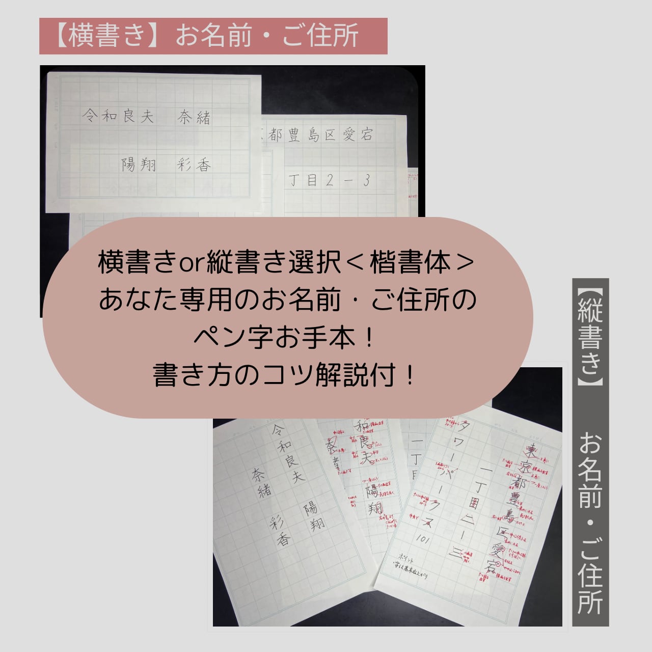 <楷書体>あなた専用☆ご家族分のお名前・ご住所のペン字お手本!書き方のコツ解説付!