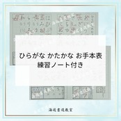「ひらがな・かたかな お手本表」と練習用ノートのセットです。