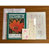 ・「ひらがなのひょう」「かたかなのひょう」各1枚(おおよそB4サイズ。半分に折りたたみ発送)「ジャポニカ学習帳(こくご8マス)」を使用して作成。